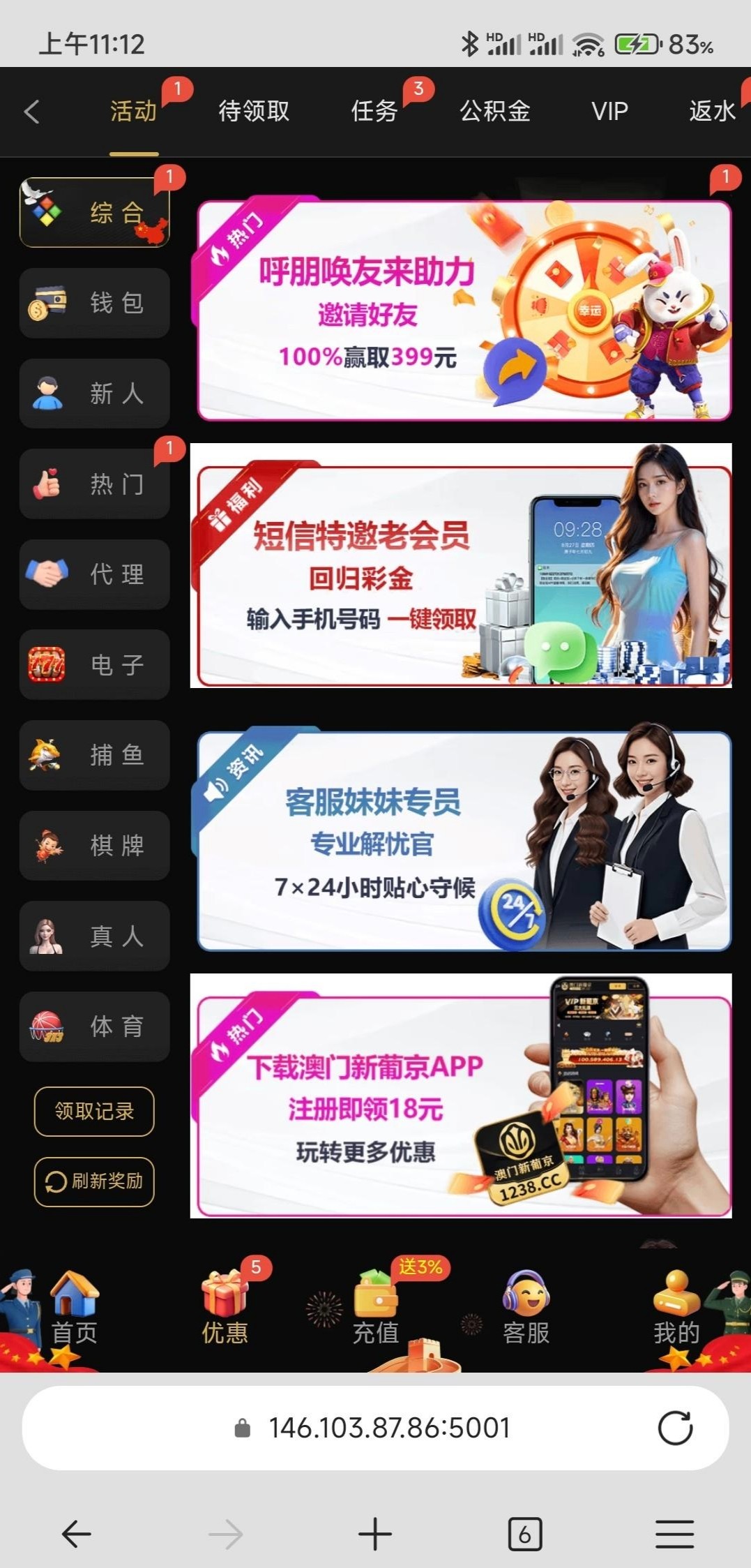 之前是特邀短信自助送9现在又出了一个短信回归之前领过9的估计这个也可以领1238.cc