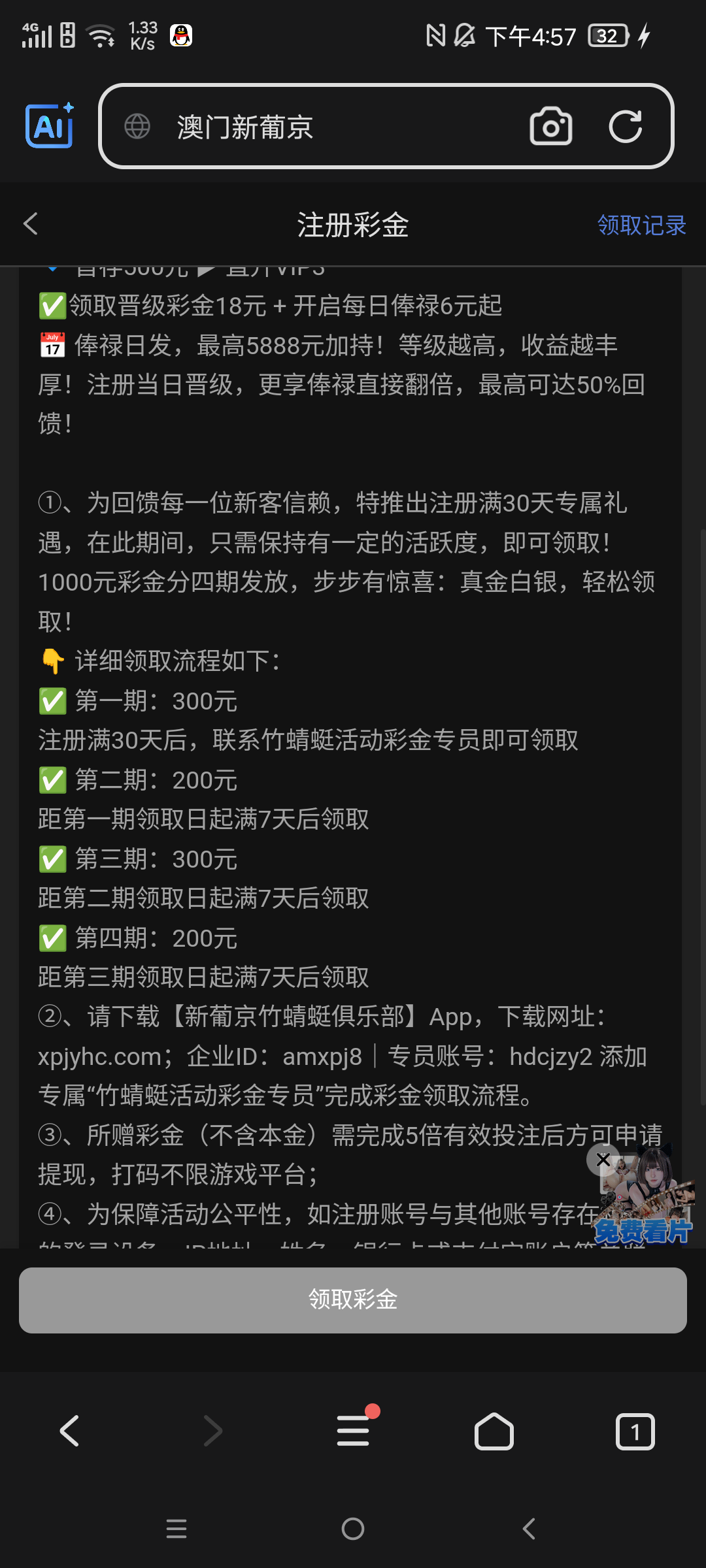 微信特邀,注册账号完善个人信息,注册满30天后联系竹蜻蜓专员领取300元7天→200-300-200共计1000元,活动真假还不确定,没事,可以先注册30天后领取!