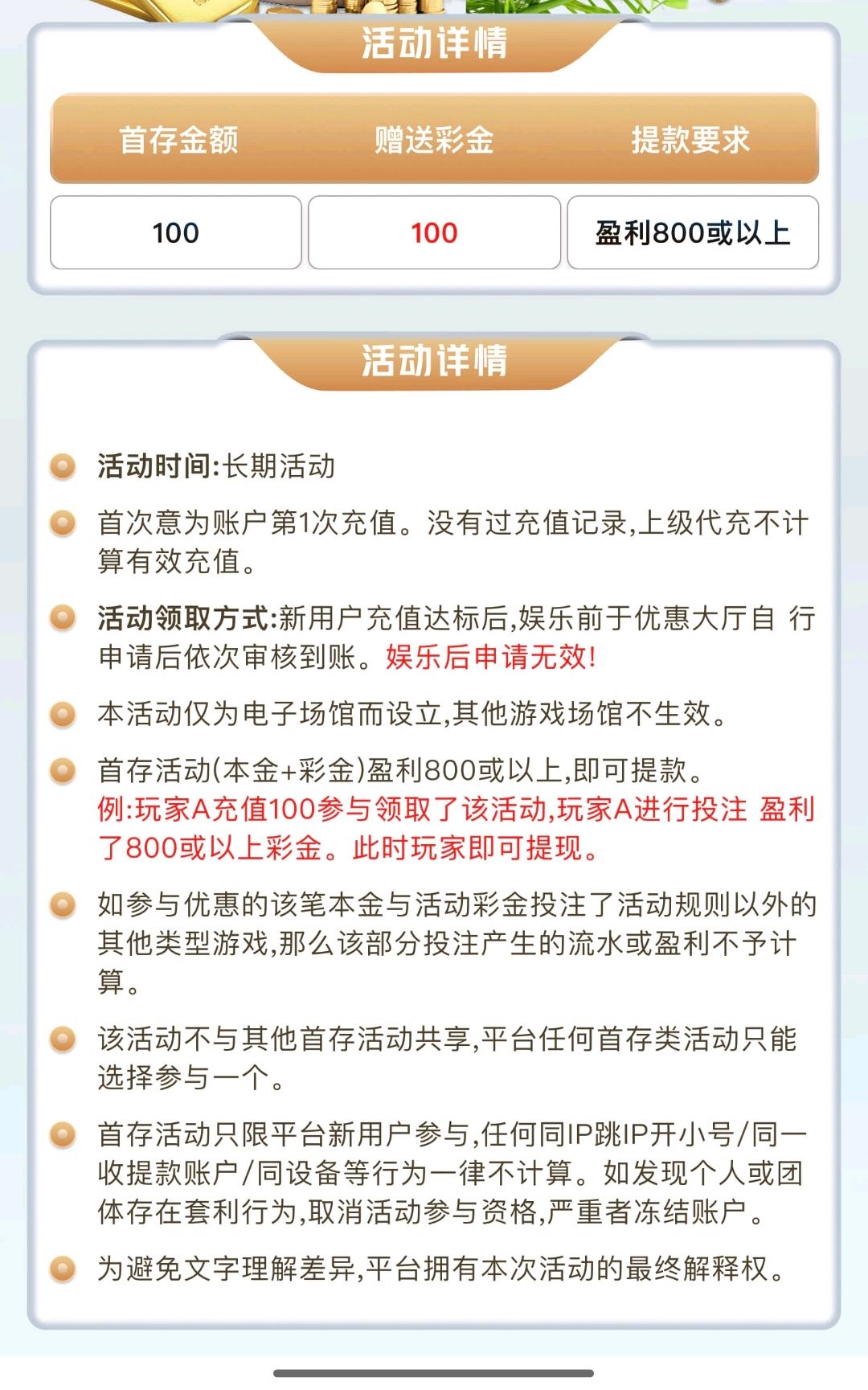 完成1万的流水再送88彩金,无游戏限制